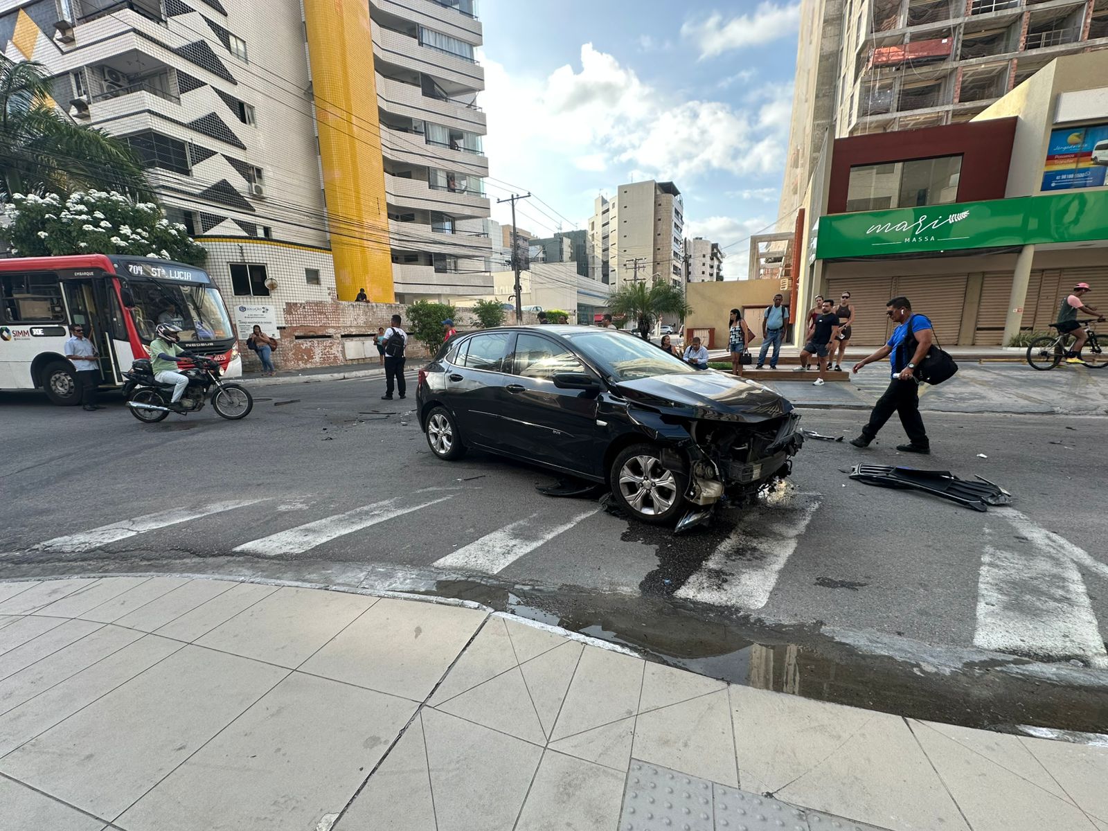 De acordo com informações apuradas, o condutor do carro, um homem de 34 anos, relatou que estava trafegando pela Rua Carlos Tenório. Ao tentar realizar uma conversão à direita para acessar a Durval Guimarães, ele passou mal e perdeu o controle do veículo, colidindo com o ônibus que seguia pela via principal. Testemunhas afirmaram que o motorista do carro não percebeu a aproximação do coletivo, o que não só causou o acidente, como também resultou em danos consideráveis à parte frontal do automóvel.