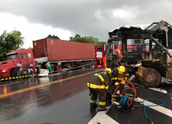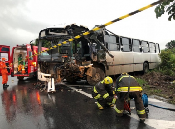 Uma acidente entre  um ônibus e uma carreta deixou três pessoas feridas na BR-316, zona rural de Satuba, em Alagoas, na madrugada desta quarta-feira (1º).