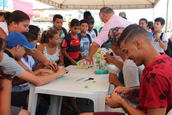 Dentro dessas ações, destacaram-se as oficinas de iniciação à robótica para crianças e jovens, ministradas por técnicos da Secti. A atividade permite que crianças de 6 a 13 anos construam protótipos robóticos em forma de carro, utilizando resíduos sólidos reutilizáveis (garrafas pet). Além de conhecer novas técnicas, novas perspectivas e criar equipamentos, essa atividade traz uma concentração e percepção que podem ajudar as crianças e jovens no dia a dia. É uma ação que estimula o conhecimento e desperta o interesse por um tema que abre os caminhos para as profissões do futuro.
