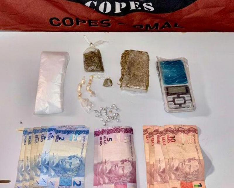 Durante o patrulhamento, os policiais identificaram um jovem cujas características correspondiam às informações recebidas. Ao abordá-lo, encontraram em seu poder um papelote de maconha e 37 pedras de crack. A ação não terminou aí. Após uma busca minuciosa nas proximidades, especificamente perto de uma cerca de arame farpado, a equipe localizou mais substâncias entorpecentes, uma balança de precisão para pesagem das drogas e a quantia de R$ 83 em dinheiro.