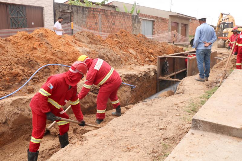 Já em relação ao abastecimento de água, a Seinfra está realizando a instalação de aproximadamente 42 km de rede de distribuição e mais de 700 metros de rede adutora, responsável por transportar a água tratada. Além disso, está prevista a construção de uma estação de tratamento, duas estações elevatórias e um reservatório de água.