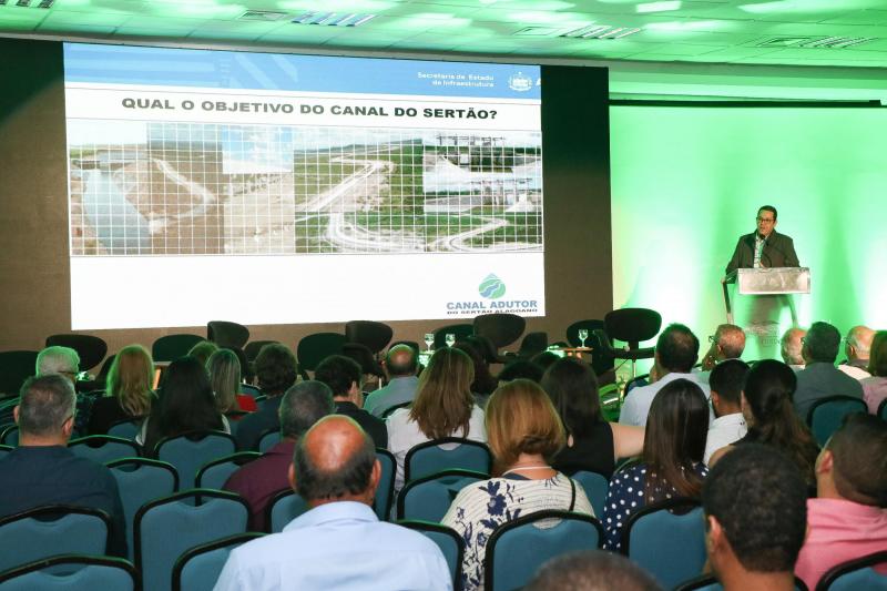 Durante a apresentação, Barros fez um panorama geral do projeto, detalhando como a obra é dividida e de que maneira funciona. Ele também destacou os benefícios que a obra traz para os 46 municípios alagoanos atendidos, enfatizando que os custos são superados em mais de R$31 milhões pelos benefícios trazidos pelo projeto. As obras do Canal Adutor do Sertão são de responsabilidade da Seinfra e são executadas com recursos federais, com destinação principalmente para a irrigação, facilitando a vida do pequeno agricultor e garantindo a sobrevivência de milhares de famílias alagoanas.