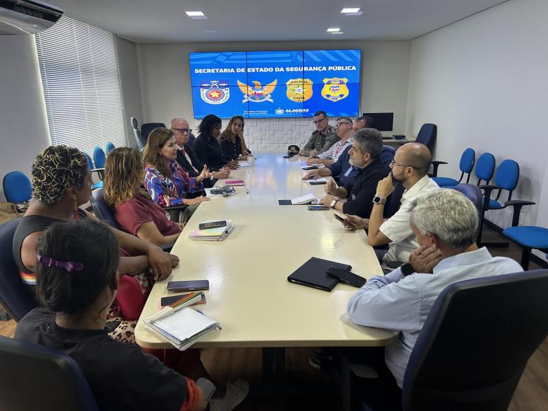 Entre os participantes da reunião estavam as promotoras de Justiça Karla Padilha e Alexandra Beurlen, além de outros importantes representantes, todos unidos na busca por estratégias que melhorem a integração social e a proteção dos direitos humanos na comunidade alagoana.