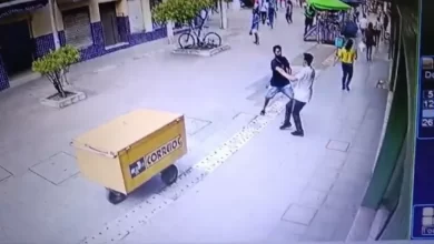 Homem é esfaqueado no calçadão do centro de Maceió em ataque filmado por câmeras de segurança; suspeito é preso pela PM.