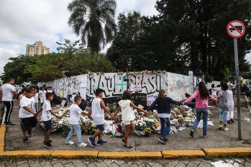 A Escola Estadual Raul Brasil foi reaberta pela primeira vez aos estudantes na manhã desta terça-feira, 19. Algumas pessoas vestiam roupas brancas e seguravam balões brancos nas mãos. Um grupo de um coral recepcionou os estudantes com música e cartazes em que pedem paz e amor. Alguns alunos chegaram à escola chorando e receberam abraços e sorrisos das pessoas que aguardavam do lado de fora da unidade.
