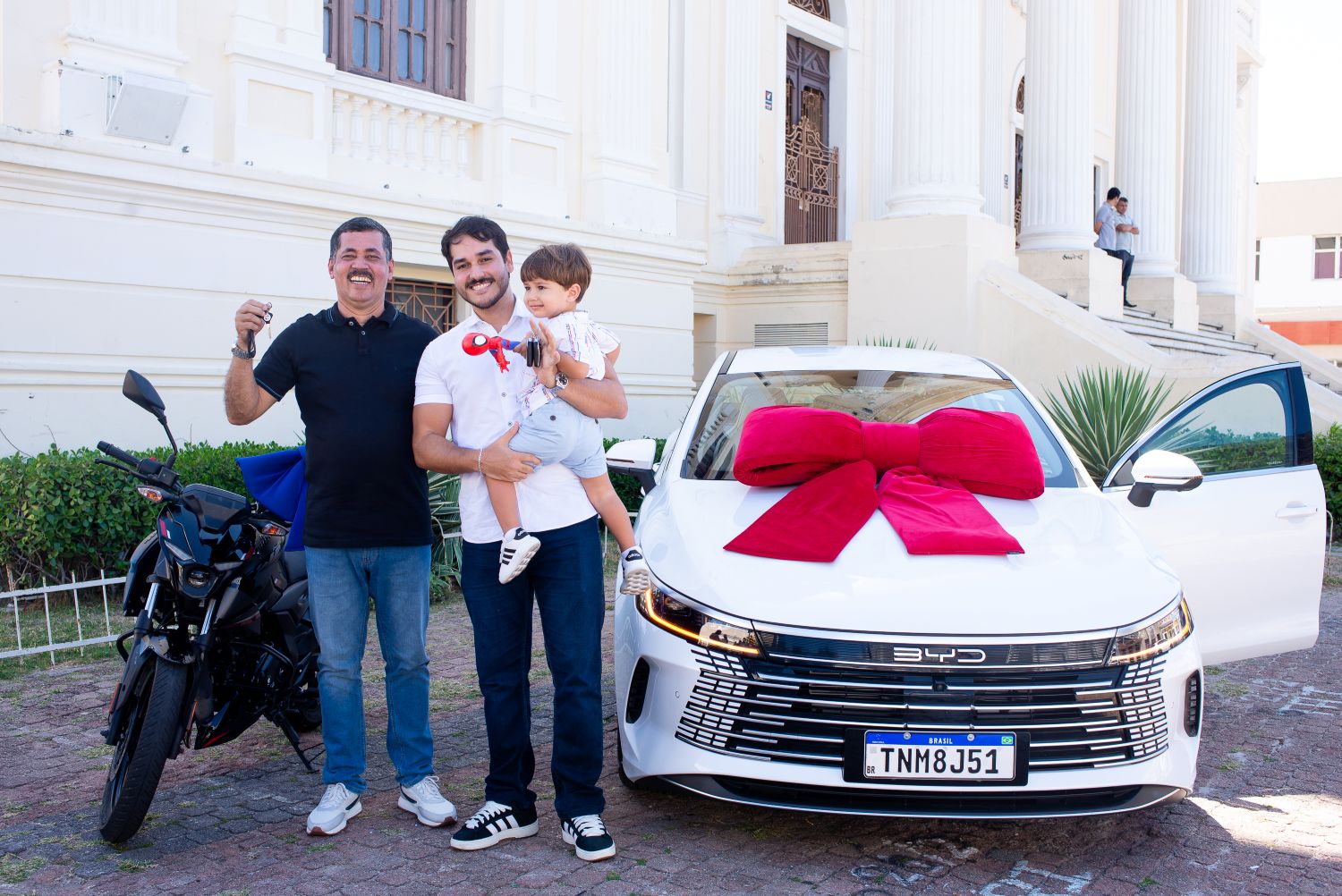 Dentre os vencedores, destacam-se Marcos Vinícius Braga, que levou para casa um carro BYD King Sedan 0 km, e Marcos Antônio Carneiro, contemplado com uma moto Bajaj, modelo 2025/2026. Marcos Vinícius, morador do Jatiúca e profissional da área de Tecnologia da Informação, revelou que concorreu com apenas três cupons digitais, gerados a partir de uma compra feita na véspera do Ano Novo. “A gente nunca espera ganhar e só acredita quando acontece. Vou aproveitar bastante o prêmio, porque não é todo mundo que tem o privilégio de dirigir um veículo desse porte”, declarou ele, visivelmente emocionado ao receber a chave do carro.