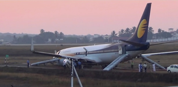 O avião, com 161 passageiros a bordo, tinha como destino Mumbai. A aeronave saiu da pista no momento em que se preparava para a decolagem, informou a Jet Airways.