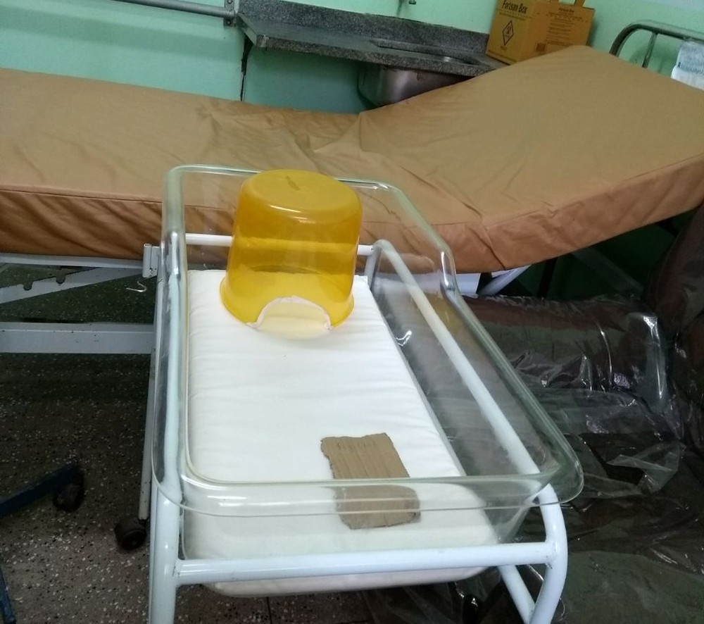 Segundo a família, o bebê nasceu roxo e com dificuldades de respiração. Como o hospital não tinha equipamentos de suporte, tiveram que improvisar com o balde. O menino morreu no sábado (10).