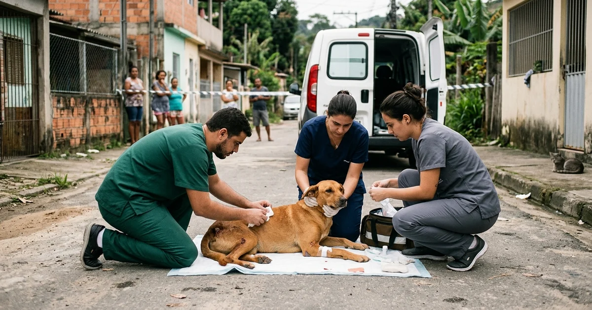 De acordo com veterinários que atenderam o animal, o projétil provocou ferimentos severos, atingindo o estômago, o diafragma e uma costela. Embora a operação tenha estabilizado o quadro clínico do cachorro, sua condição ainda é considerada crítica, e permanece sob cuidadosa observação.