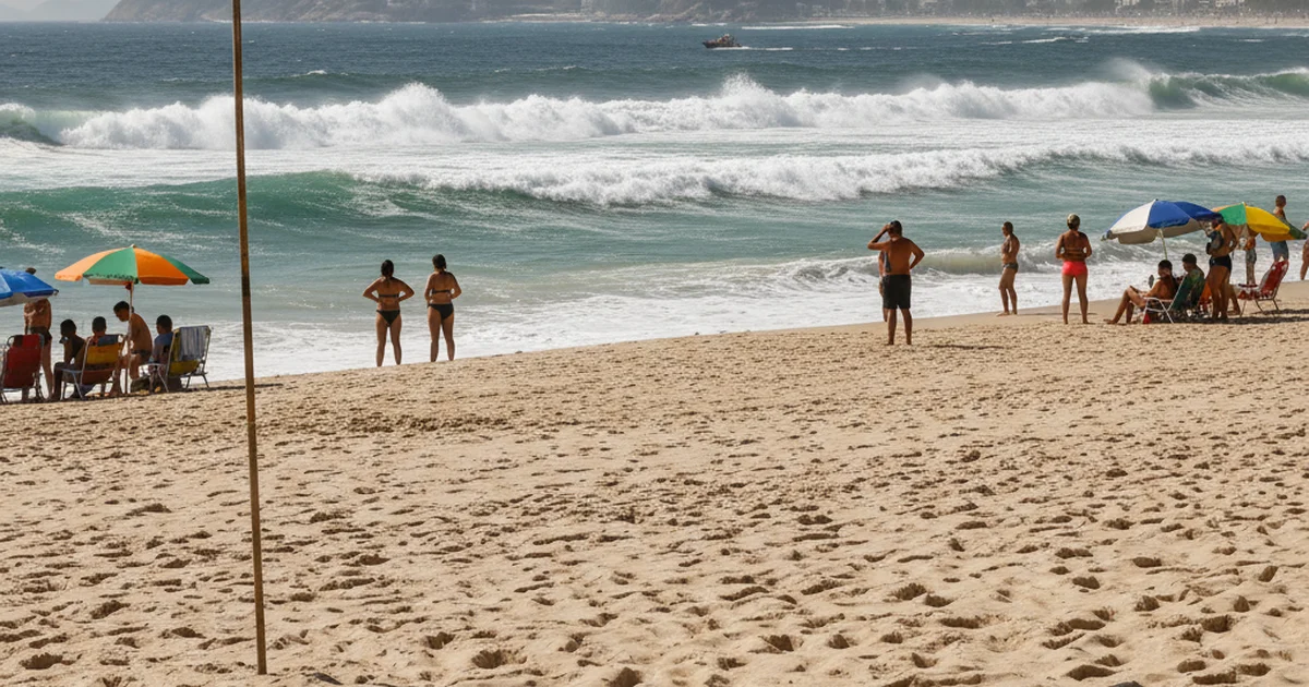 Na famosa orla de Copacabana, a movimentação é intensa desde as primeiras horas da manhã, com muitos banhistas aproveitando a festa de Ano Novo. Embora o mar esteja mais calmo do que nas últimas horas da madrugada anterior, a bandeira vermelha permanece hasteada, sinalizando ondas perigosas e correntezas potentes, que exigem cuidado redobrado dos banhistas.