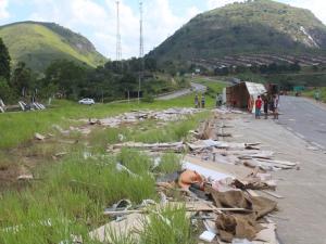A Polícia Militar e o Pelopes (Pelotão de Operações Especiais) estiveram no local e prenderam duas pessoas que tentavam saquear as mercadorias que ficaram espalhadas pela pista e canteiro.