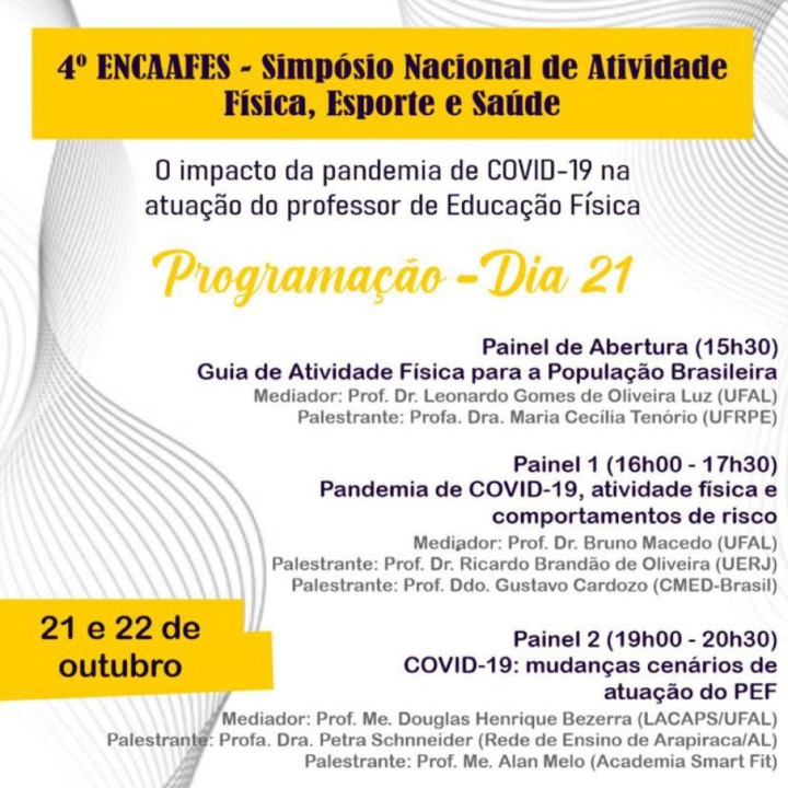 Das 20h30 às 21h – Painel de Encerramento: Guia de Atividade Física, pandemia de Covid-19 e letramento corporal