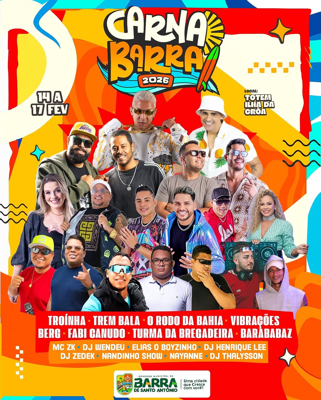 Dentre os destaques da programação, nomes como Troinha, Trem Bala, O Rodo da Bahia, Vibrações, Bero, Fabi Canudo, Turma da Bregadeira e Barababaz se apresentarão no palco principal, trazendo uma mistura vibrante de axé, pagode, brega e outros ritmos populares que caracterizam o carnaval nordestino. Essa rica variedade musical reflete a essência festiva da região e promete agradar a diferentes públicos, desde os mais jovens até os fãs do carnaval tradicional.
