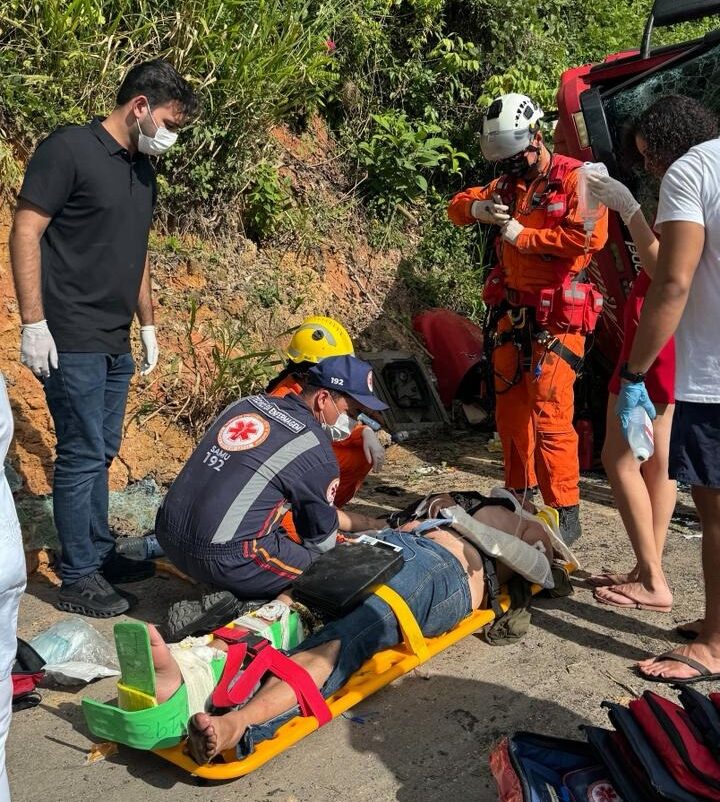 Informações preliminares do Serviço de Atendimento Móvel de Urgência (Samu) indicam que o condutor sofreu diversas lesões, incluindo escoriações no tórax e braços, além de uma fratura no braço esquerdo e uma fratura exposta na perna direita. Apesar da gravidade das lesões, o motorista permaneceu consciente e orientado durante todo o atendimento pré-hospitalar.