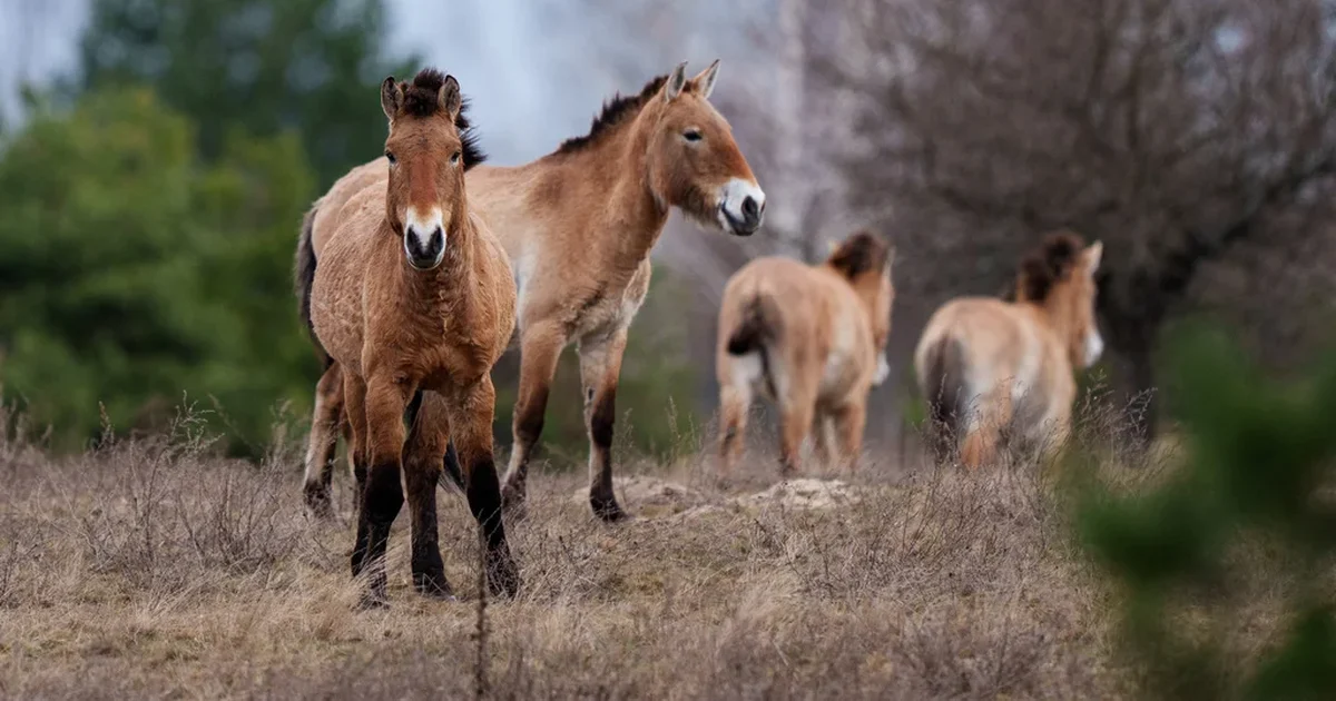 Os cavalos de Przewalski, com sua pelagem cor de areia e um comportamento eternamente selvagem, foram introduzidos na região em 1998, como parte de um experimento de reintrodução, após terem sido considerados extintos na natureza em 1969. Esses animais, que possuem um conjunto distinto de cromossomos em comparação com as raças domésticas, agora formam pequenos grupos sociais na zona, desafiando as expectativas e adaptando-se à nova realidade de um ambiente contaminado.