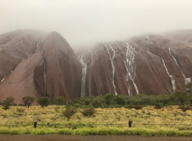 Conhecida pela clima desértico, a região central da Austrália acabou sendo “transformada” em um conjunto de cachoeiras. O Parque Nacional de Uluru-Kata Tjuta, um dos grandes símbolos da cultura aborígene, acabou recebendo volume recorde de chuva.