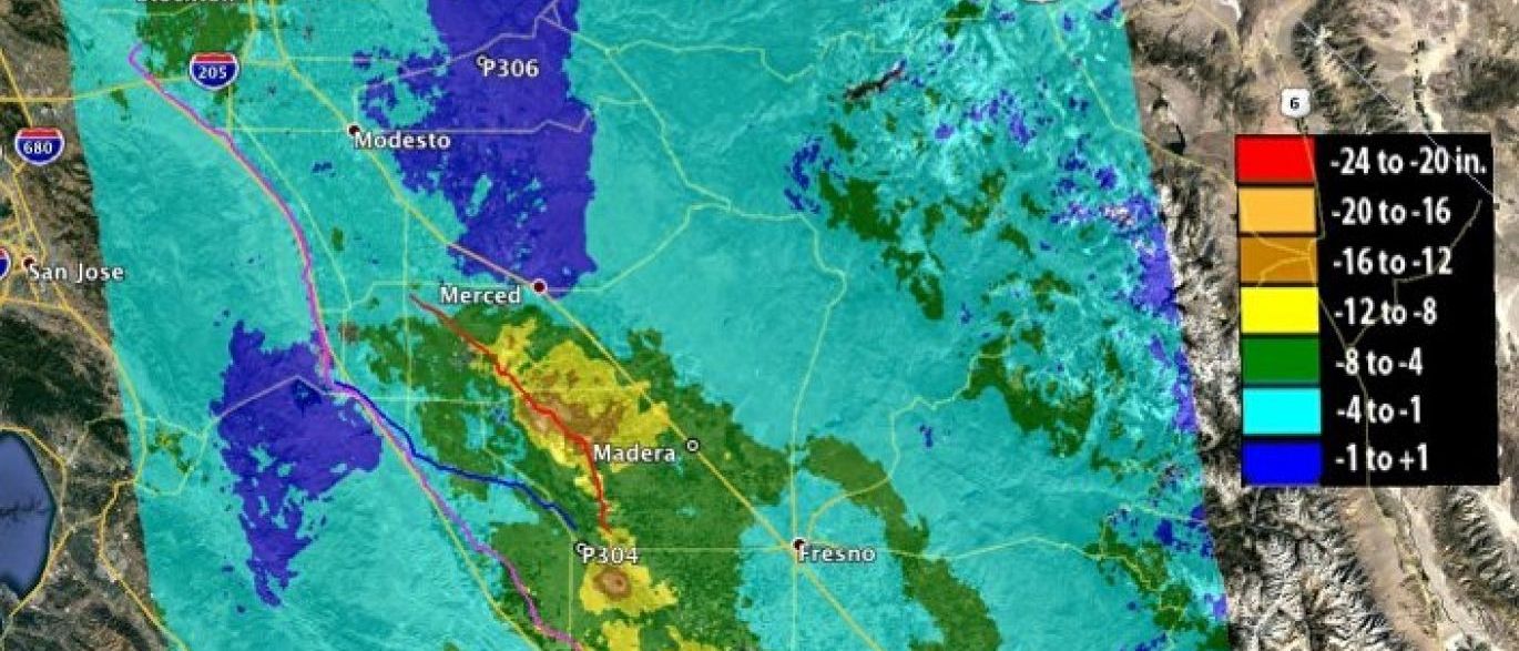 Os cientistas do Laboratório de Propulsão a Jato da NASA (JPL) examinaram e compararam imagens captadas por meio de interferometria por radar de abertura sintética (InSAR) e chegaram a essa conclusão: algumas áreas do vale San Joaquin estão afundando.