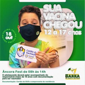 A vacinação contra a Covid-19 está sendo acelerada pela Prefeitura da Barra de Santo Antônio. Nesta segunda-feira (18/10) a imunização será para meninos e meninas a partir dos 12 anos e à dose de reforço para idosos com 60 anos ou mais, pessoas com grau de imunossupressão e Profissionais de Saúde que trabalham no município. A unidade também segue aplicando a segunda dose, conforme a data estipulada no comprovante da primeira.