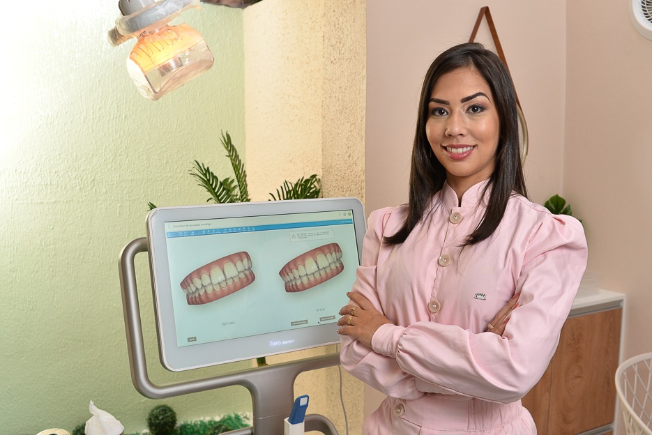 “O Invisalign é o sistema mais moderno de correção da posição dos dentes com o uso de alinhadores invisíveis. Para iniciarmos o tratamento, é feito um escaneamento em 3D da arcada dentária com o iTeroscanner, que permite o mapeamento que norteará o tratamento e, ainda, possibilita que o paciente possa ver como ficarão seus dentes após o tratamento”, esclarece Andressa Lira.