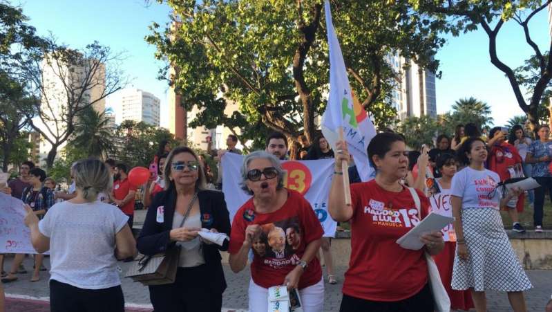 Outro protesto foi realizado durante a tarde. O local escolhido pelos manifestantes – principalmente eleitores de Fernando Haddad – , foi a praça Portugal, zona conhecida por concentrar os partidários de Jair Bolsonaro na capital cearense, no que foi visto por muitos como um ato de provocação.