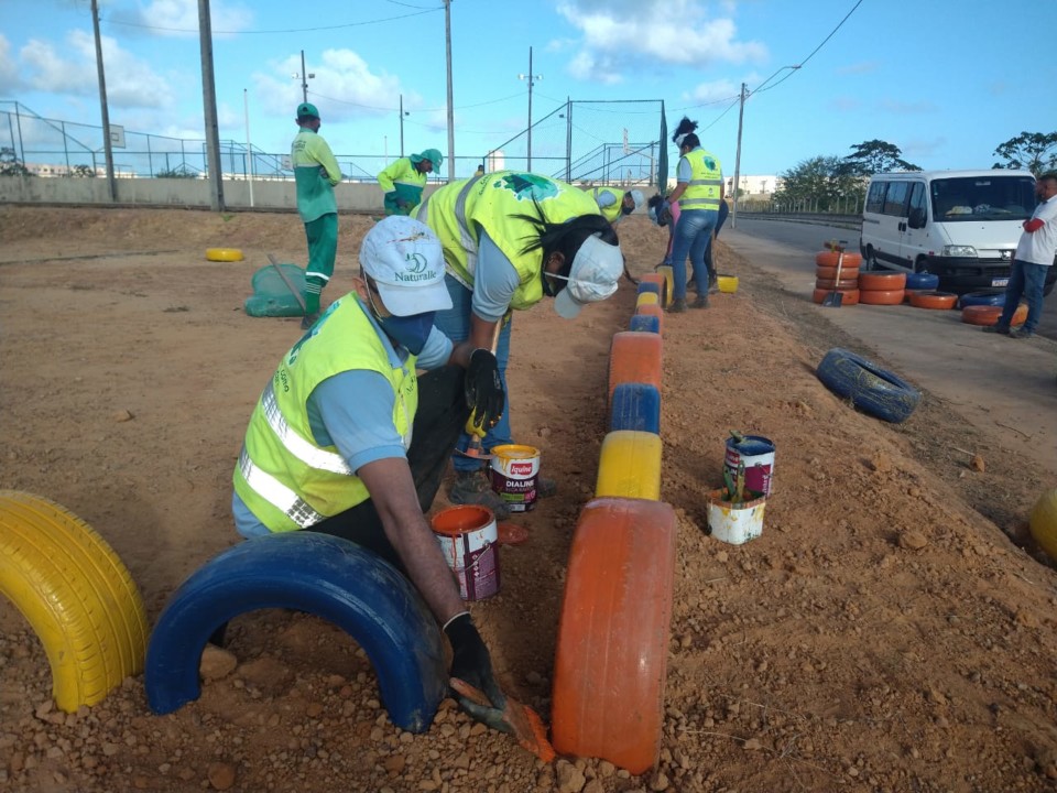 Além da educação ambiental, os servidores da Superintendência estiveram envolvidos na limpeza e revitalização de uma área de convívio social, fazendo a reutilização de 50 pneus que seriam descartados de forma irregular e o plantio de 15 mudas de árvores nativas.