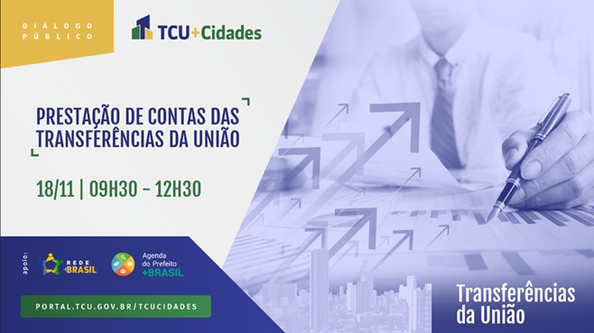 A área técnica de Transferências Voluntárias da Confederação Nacional de Municípios (CNM) participa na próxima quinta, dia 18 de novembro, do Diálogo Público Prestação de Contas das Transferências da União. Promovido pelo Tribunal de Contas da União (TCU), o evento vai abordar a prestação de contas relativas às Transferências da União, com debates interativos e salas temáticas sobre Educação, Saúde e Infraestrutura Urbana. A transmissão pode ser acompanhada pelo canal do TCU no YouTube, mediante a confirmação da participação aqui das 9h30 às 12h30.