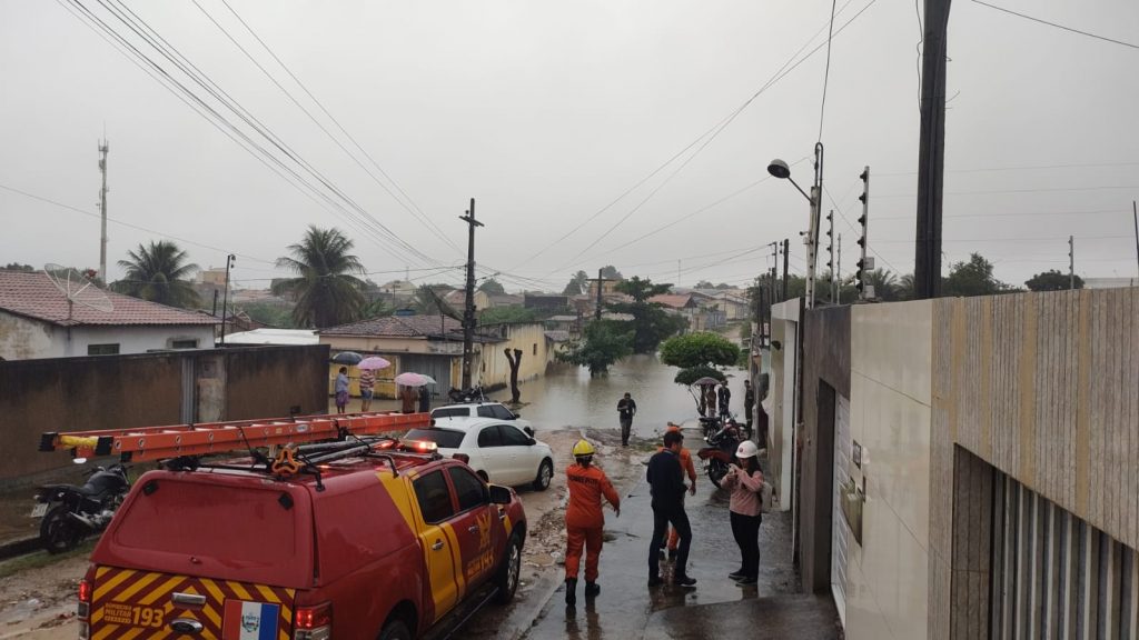 No bairro Brasiliana, nossas equipes estão atuando em parceria com o Corpo de Bombeiros Miliar, retirando os moradores das áreas que foram inundadas.