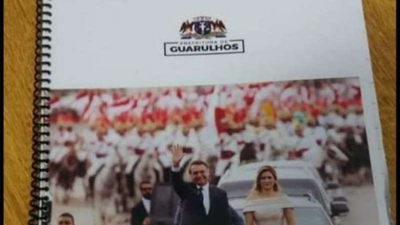 Professores da Escola Municipal Sophia Fantazzini Cecchinato, em Guarulhos (SP), receberam apostilas com a imagem do presidente Jair Bolsonaro (PSL) e da primeira-dama Michelle Bolsonaro. A apostila, usada para o planejamento das aulas durante o ano letivo, ainda tem o logo oficial da Prefeitura de Guarulhos. O caso acontece no mês passado. As informações são do G1.