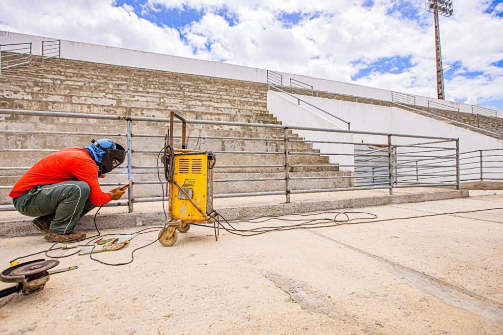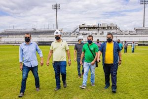 Nesta quarta-feira, (5), o superintendente de Esportes, Benilton Rodrigues, engenheiros da Secretaria de Infraestrutura, o coordenador Municipal de Marketing, Igor Castro, e o administrador do Estádio, Gilney Franklin, estiveram no local para conferir de perto os ajustes finais para reabertura da praça esportiva para os torcedores.