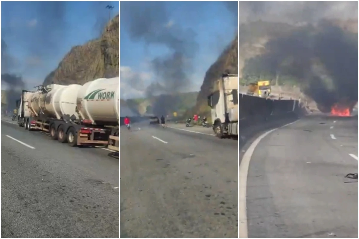 Imagens que circulam nas redes sociais mostram o caminhão detido no acostamento com claros sinais de incêndio. Nas proximidades, um veículo de passeio apresenta um exterior coberto de fuligem, e em frente à cena do acidente, chamas e uma densa coluna de fumaça preta se elevam ao céu. Objetos espalhados pelo chão que provavelmente foram lançados durante a explosão também podem ser vistos, evidenciando a força do incidente.