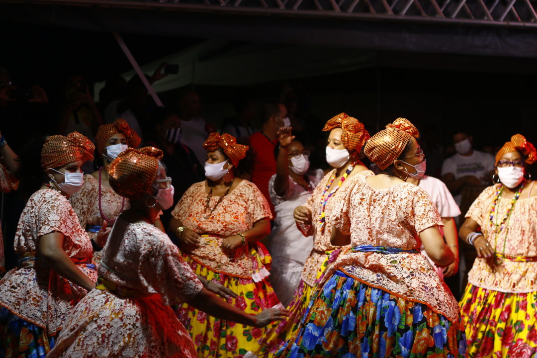 Grupo de coco da Liga dos Grupos de Coco de Roda de Alagoas na live do São João 2021 da Prefeitura.