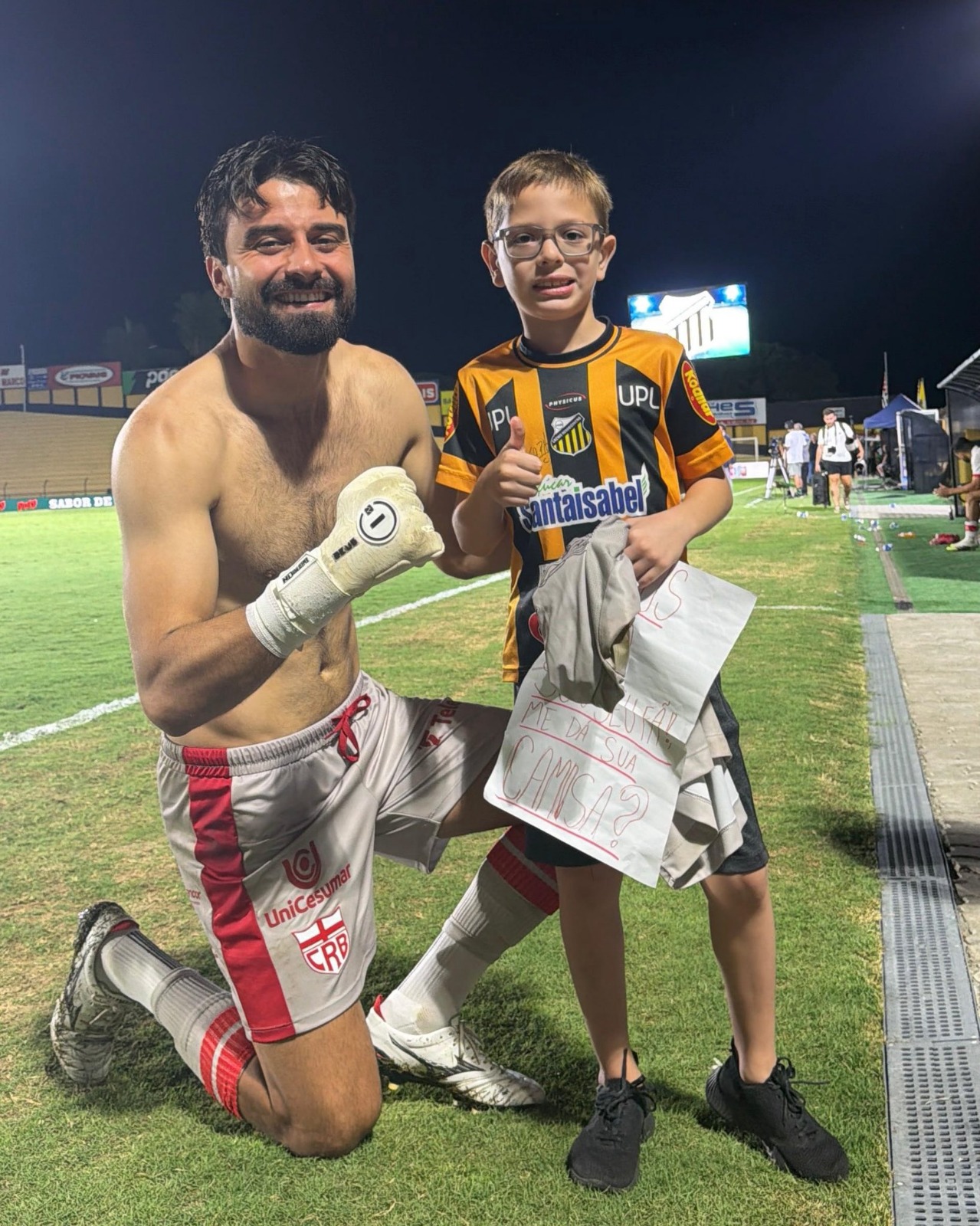 Durante suas férias, Arthur ganhou a camisa oficial do CRB, símbolo de uma paixão que foi cultivada após conhecer o time em sua terra natal. O reencontro em Novo Horizonte foi, portanto, um momento esperado. Ao término do jogo, o pequeno torcedor não apenas viu seu herói, mas ousou sonhar grande: um encontro que culminou na entrega da camisa oficial do goleiro, um gesto significativo que transcendeu o simples ato de dar um presente.
