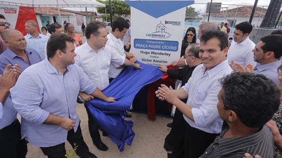 Ao lado de Hugo Wanderley, o governador prestigiou a inauguração do pórtico de entrada da cidade e da praça Padre Cícero, no povoado Minador do Lúcio.