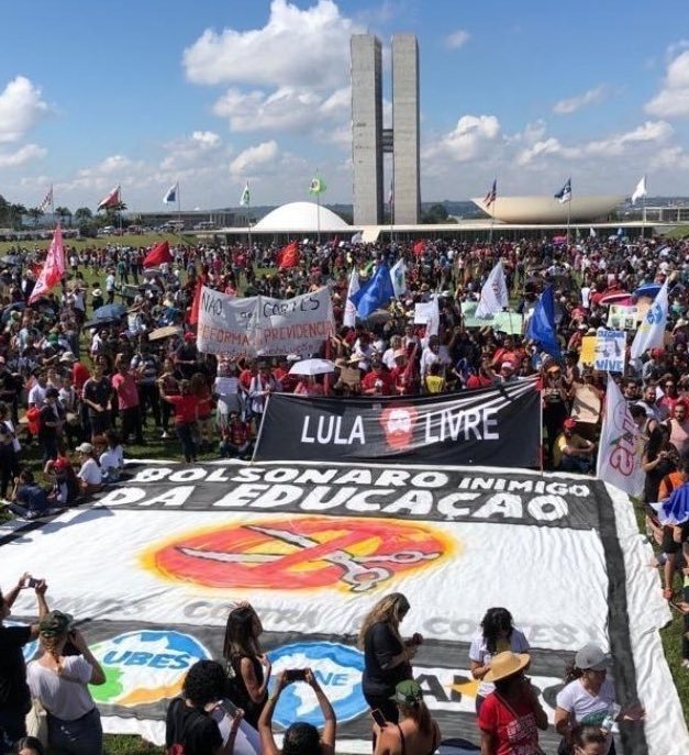 A greve da educação convocada pela esquerda acabou se transformando nada menos que uma manifestação Lula Livre. Diversas imagens publicadas nas redes sociais mostram manifestantes apoiando a soltura do ex-presidente Lula. Tais atos contam com apoio de centrais sindicais e movimentos de esquerda como, por exemplo, a CUT – Central Única dos Trabalhadores e o MST – Movimento dos Trabalhadores Rurais Sem Terra. Além disso, a manifestação também conta com apoio de partidos políticos da esquerda e extrema esquerda – PCdoB, PSOL e PT.