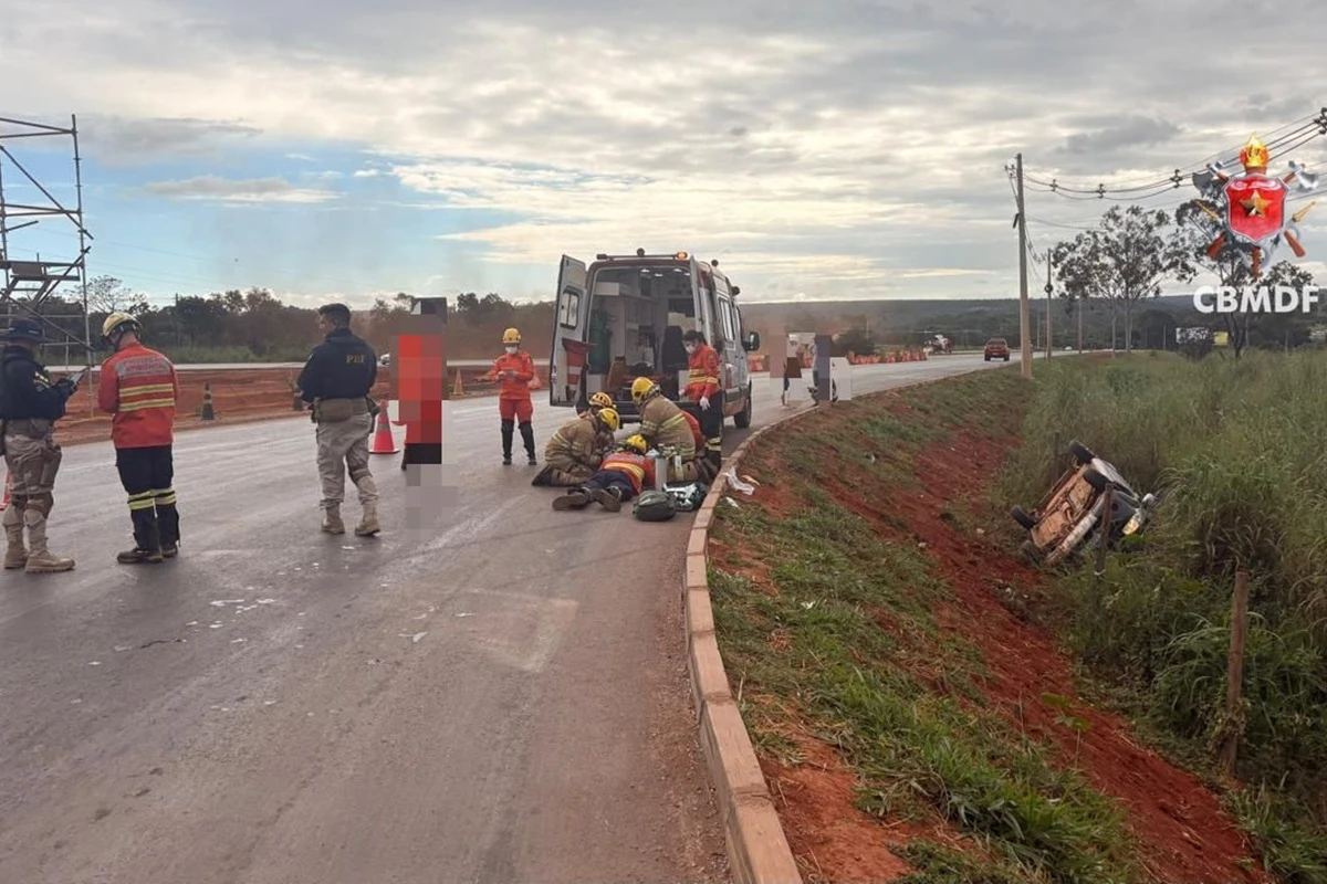 Quando os socorristas chegaram ao local, encontraram um carro capotado em um canteiro lateral da rodovia. A situação era preocupante, mas os três ocupantes do veículo aparentavam estar ilesos. No entanto, o panorama se tornava mais grave com a descoberta de um homem que estava caído ao chão, vítima do atropelamento.