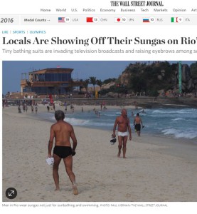 Além disso, o artigo do The Wall Street Journal faz referência à frequência com que são publicadas matérias em sites brasileiros sobre dicas para escolher o melhor traje de praia. São citados dois exemplos: a recomendação de modelos de biquíni que alongam as pernas das mulheres e a dica para que homens mais pálidos escolham as cores corretas para não evidenciar a falta de bronzeamento.