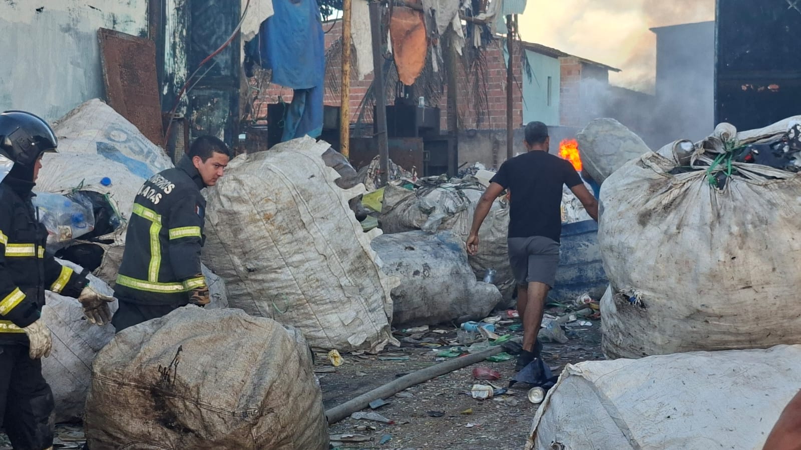 Imagens divulgadas após o incidente revelam a gravidade da situação. O galpão, uma instalação dedicada à reciclagem de materiais, ficou severamente danificado, evidenciando a força do incêndio. O local, conhecido por suas atividades sustentáveis, agora apresenta uma cena desoladora, com destroços e uma enorme nuvem de fumaça que paira sobre a área.