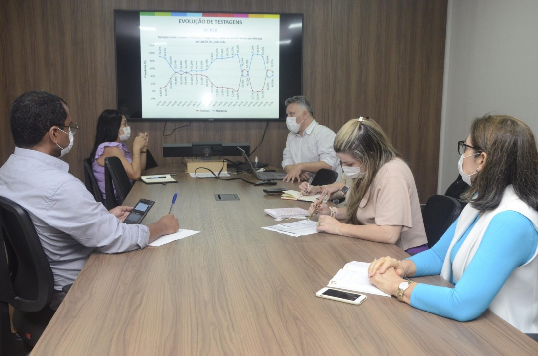 O Grupo Técnico (GT) da sala de situação da Covid-19, da Secretaria de Estado da Saúde (Sesau), voltou a se reunir na terça-feira (26), para a análise dos dados sobre o novo coronavírus em Alagoas. São levados em consideração os números de casos, hospitalizações e óbitos no Estado. O panorama discutido semanalmente pelo GT é essencial para a tomada de decisão da gestão em saúde pública.