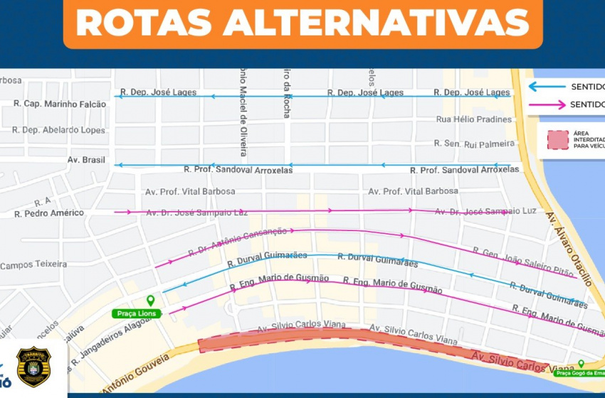 Para as pessoas que não querem acessar a localidade, a SMTT também orienta sobre as rotas alternativas que podem ser acessadas neste dia. A orientação para quem vier da Avenida Álvaro Otacílio e precisar se deslocar à região do Centro, é usar as Ruas Deputado José Lages, Professor Sandoval Arroxelas ou Durval Guimarães.