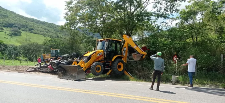 A aeronave Falcão 04 também esteve no local para dar suporte a ocorrência. Pelo menos três bois que estavam na carroceria acabaram morrendo e outros fugiram após o acidente. Duas retroescavadeiras foram usadas para o trabalho de remoção dos escombros.