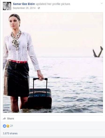 Internautas encontraram no Facebook de uma das comissárias do voo MS804, que caiu no Mar Mediterrâneo, uma publicação enigmática feita por ela há quase dois anos. Samar Ezz Eldin, de 27 anos, publicou, em setembro de 2014, a foto de uma aeromoça com a roupa molhada carregando uma mala ao sair do mar, com uma aeronave vítima de um acidente ao fundo. A foto assustadora intrigou internautas, e muitos acreditam que ela tenha tido uma premonição.