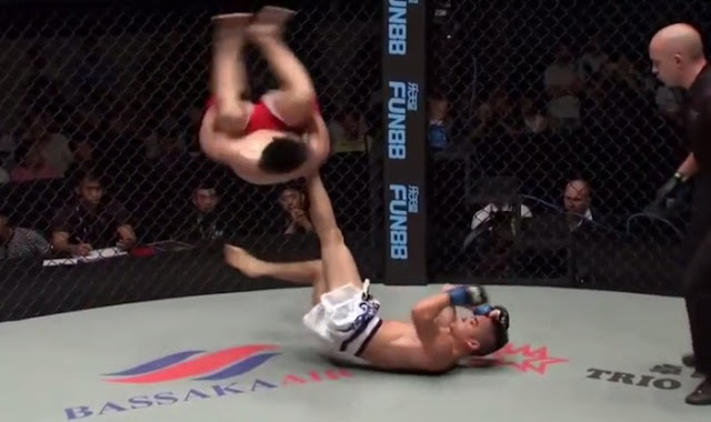 Durante uma luta de MMA válida pelo One Championship, na Ásia, o lutador Wu Zen tentou dar um golpe giratório inusitado que poderia acabar com a luta. O problema foi que ele errou e acertou em cheio outra parte do adversário. Veja só: