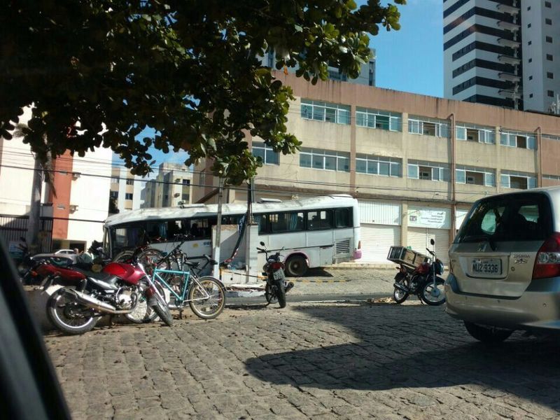 Ônibus atinge muro de condomínio após ficar sem freio