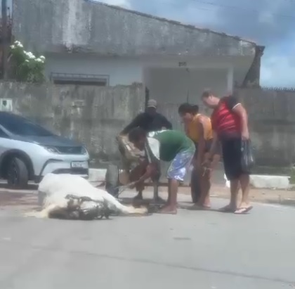 Além da agressão ao cavalo, o vídeo também revela um ambiente sujo, com acúmulo de lixo nas redondezas, o que acentua a sensação de abandono no bairro. A imagem do cavalo debilitado, que tenta se levantar, só para ser agredido novamente, torna-se um símbolo do sofrimento animal presente em cenários de abandono. O morador, ainda mais indignado, comenta: “Animal cansado… mataram o bicho, pô. Ainda querem levantar chutando”, evidenciando o ciclo de violência que perpassa o tratamento dispensado ao animal.