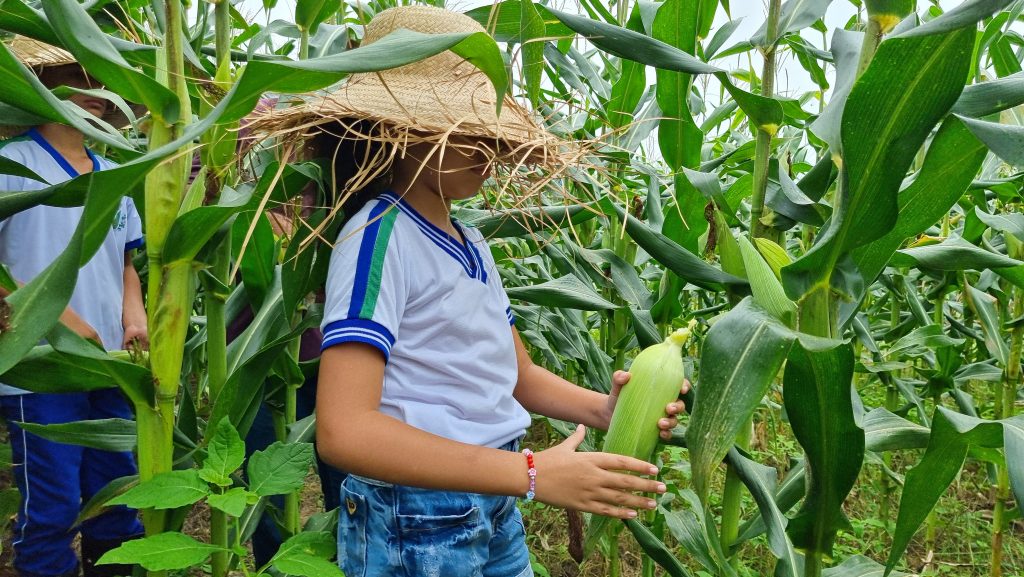 Após a semeadura realizada durante o Dia de São José, os alunos da Escola de Ensino Fundamental Manoel Humberto da Costa, do bairro Batingas, realizaram nesta terça-feira (7), a colheita do milho no Centro de Apoio às Escolas em Tempo Integral V (Caeti-V), Escola de Campo.