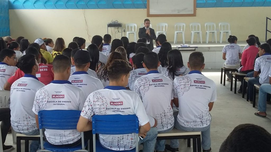 Trabalhar a cidadania e despertar nos jovens a “importância do voto consciente” levou o promotor de Justiça, Sílvio Azevedo, as escolas da cidade do Pilar. Em duas oportunidades, ele reuniu estudantes da Escola Estadual Oliveira e Silva e da Escola Machado de Assis, nessa última o representante ministerial dividiu as orientações com o juiz da Comarca, Sandro Augusto dos Santos, com os desembargadores do Tribunal Regional Eleitoral (TRE/AL), Alberto Maia de Omena Calheiros e Luiz Vasconcelos Netto, além dos funcionários do Cartório Eleitoral, Joel Ferreira, Carlos Eduardo, Manuela Pimentel e Adelaide Michele, também com o diretor da unidade de ensino, professor Flávio Costa, os quais compuseram a mesa para tratar do tema “Cidadania e Eleição”, organizada pela Escola Judiciária Eleitoral (EJE).