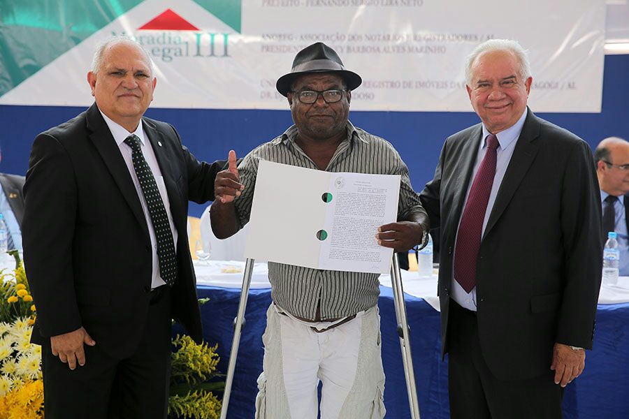 Nesta sexta-feira (29), o aposentado José Ferreira da Silva, de 64 anos, foi um dos 370 moradores que trocou, de maneira gratuita, o “contrato de gaveta” pelo título de propriedade de sua casa, no Município de Maragogi. Com a entrega dos documentos, o presidente do Tribunal de Justiça de Alagoas (TJ/AL), desembargador Otávio Leão Praxedes, deu início a terceira etapa do programa de regularização fundiária Moradia Legal III.