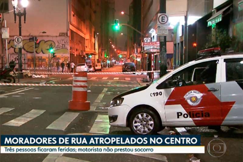 Um motorista que dirigia um carro de luxo atropelou três moradores de rua na região central de São Paulo na madrugada desta segunda-feira, 19. As vítimas ficaram feridas. O condutor do veículo fugiu sem prestar socorro.