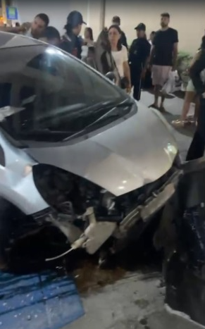 Segundo relatos de testemunhas que assistiram à cena, o condutor, que dirigia um Honda Fit, estava em uma área de estacionamento quando aparentemente passou mal, o que resultou na perda de controle do carro. A colisão foi suficientemente forte para deixar a parte frontal do veículo totalmente destruída, como puderam registrar os populares que estavam próximos.