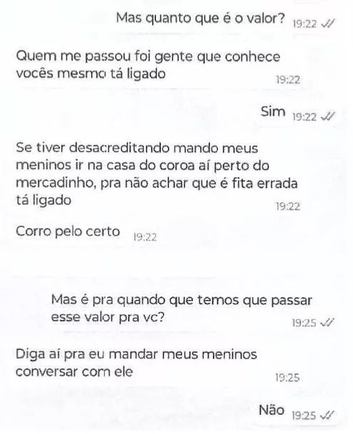 De acordo com a polícia, a mulher teria criado uma conta falsa no aplicativo de mensagens instantâneas e utilizava para fazer ameaças de morte contra familiares que moram em Maceió, utilizando vários detalhes sobre a rotina das vítimas. Com medo das ameaças se concretizarem, a tia da acusada já havia transferido R$ 2 mil para os golpistas